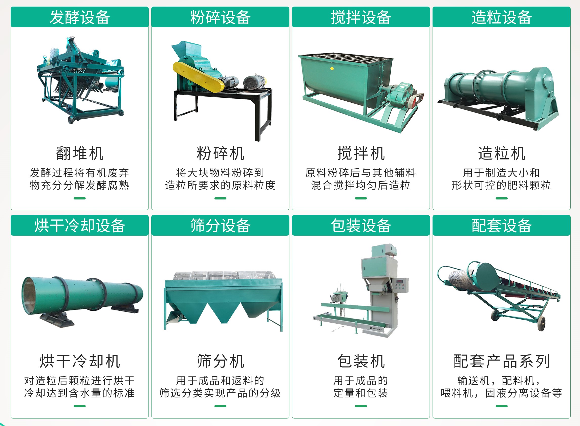 有機肥和生物有機肥的選用原料可以是各種畜禽糞便和有機廢棄物。 基本生產配方因類型和原材料而異。 有機肥生產設備一般包括:發酵設備、混合設備、破碎設備、造粒設備、干燥設備、冷卻設備、肥料篩分設備、包裝